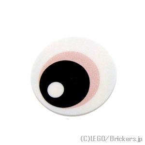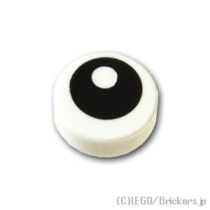 ラウンド タイル 1 x 1 - ブラックアイ 白点付:[White / ホワイト]