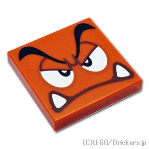 タイル 2 x 2 - 牙を出し驚いた顔のグンバの顔:[Dark Orange / ダークオレンジ]