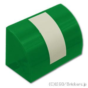 カーブ スロープ 1 x 2 x 1 -ホワイトストライプパターン:[Green / グリーン]