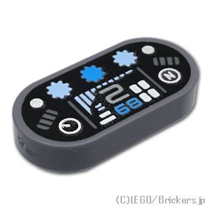タイル ラウンド 1 x 2 - オーバルゲージのシルバーキャピタルレター:[Dark Bluish Gray / ダークグレー]