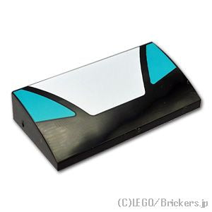 カーブスロープ - 2 x 4 x 2/3 - 白い台形にターコイズの三角形:[Black / ブラック]