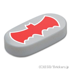 タイル ラウンド 1 x 2 オーバル - 赤いバットマンのロゴ:[Light Bluish Gray / グレー]