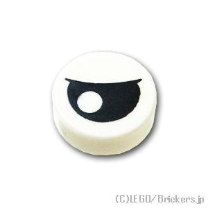 ラウンド タイル 1 x 1 - ブラックアイ 半眼 流し目:[White / ホワイト]