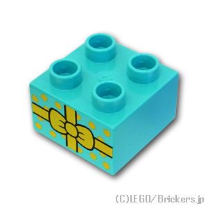 デュプロ ブロック 2 x 2 イエローリボン&ドットプレゼント パターン:[Md,Azure / ミディアムアズール]
