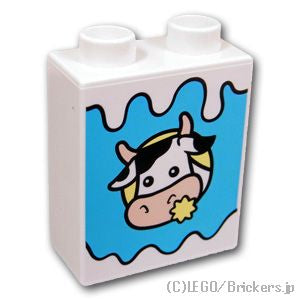 デュプロ ブロック 1 x 2 x 2 - ボトムチューブ 牛イラスト パターン:[White / ホワイト]