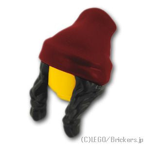 ミニフィグ コンボヘア - 三つ編みのおさげとニットキャップ(ビーニー):[Black / ブラック]