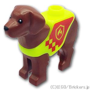 ラブラドール -赤いパネルと消防ロゴバッジパターン:[Reddish Brown / ブラウン]